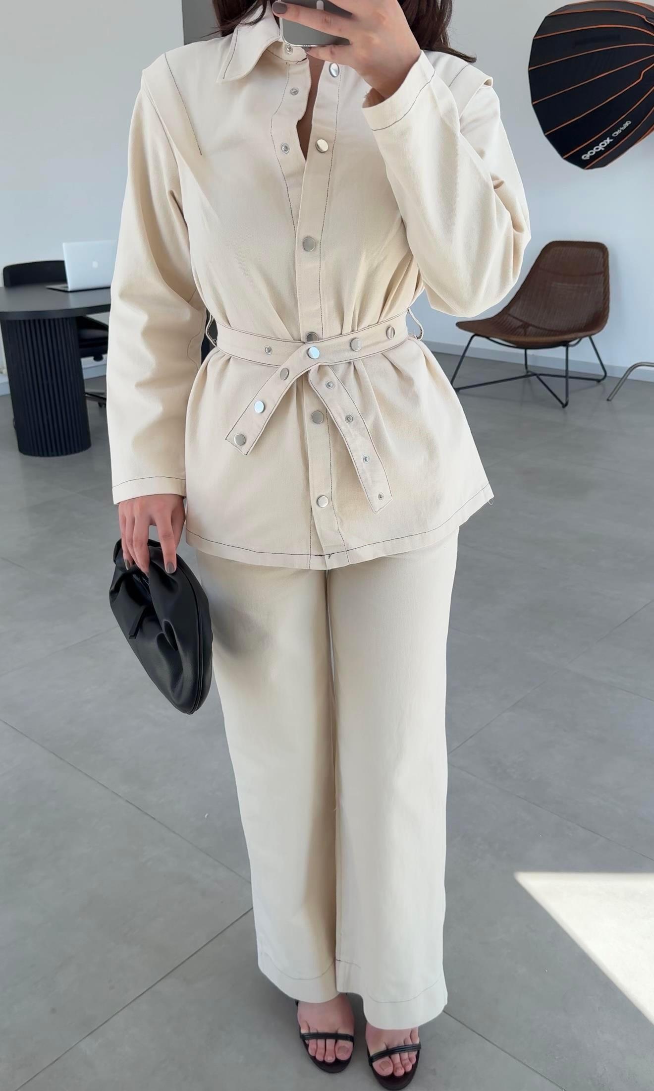 Kuşaklı gömlek ceket ile belinizi vurgulayan şık görünüm